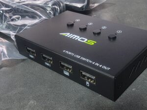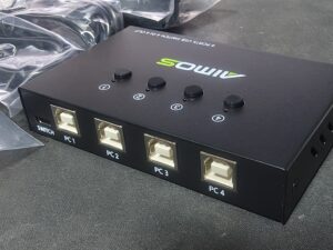 3台のPC用というのはあまり無いようで、PCが4台接続できる4入力4出力のUSB切替器をAmazonで購入。